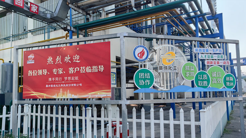嘉興富成化工科技股份有限公司是一家集研發、生產和銷售為一體的專業生產染料中間體、醫藥中間體等化工產品的現代化化工企業,主要生產苯胺系列產品,主導產品有N-乙基-N-氰乙基苯胺、N-乙基苯胺、N,N-二乙基苯胺、N,N-二甲基苯胺、N-乙基間甲苯胺、N-乙基-N-芐基苯胺、N,N-二乙基間甲苯胺。公司基礎設施完善,有一整套嚴密的工藝流程,檢測手段齊全。 公司坐落于世界第一跨海長橋—杭州灣跨海大橋北側,海鹽大橋經濟開發區內,距離上海、杭州、蘇州、寧波四城市均在80公里左右僅一小時左右的車程,位置優越,交通方便。